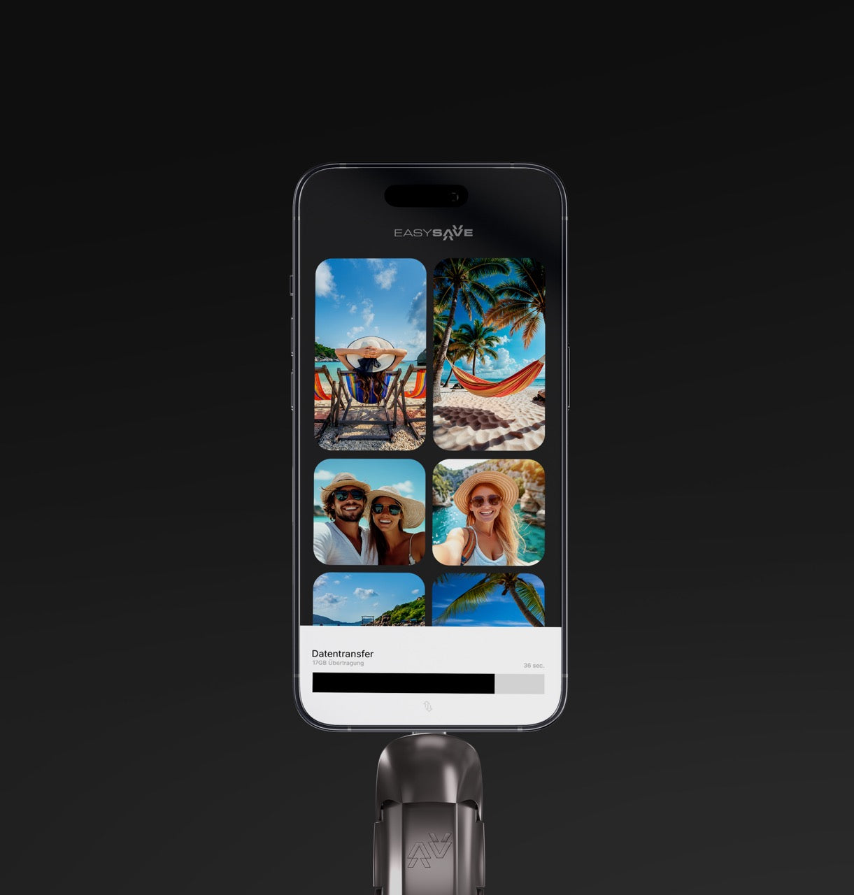 Übertrage deine Daten mit bis zu 2050 MB/s - direkt von deinem Handy auf den Stick. Keine App, keine Cloud, keine Verzögerung. Einfach einstecken, auswählen und in Sekunden sichern.